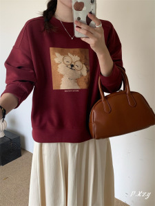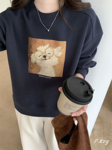 013 慵懒风圆领卫衣女秋季新款薄款休闲卡通长袖女式卫衣百搭外套