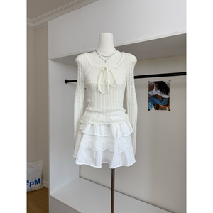 塞纳 云樱粉黛 粉色镂空针织衫女2025初秋新款长袖显瘦薄款上衣