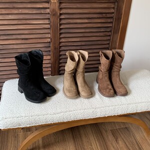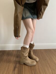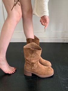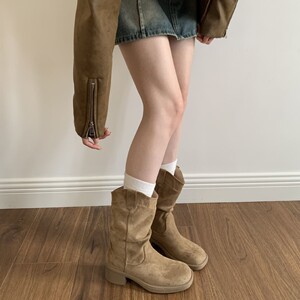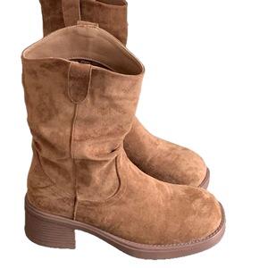 DAPAI SHOW骑士靴女西部靴粗跟复古圆头靴显瘦美拉德中跟堆堆靴女