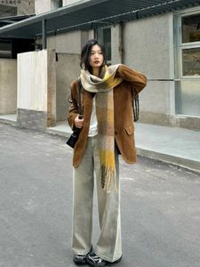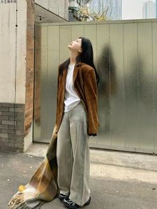 西装外套女春秋季新款休闲西服感棕色麂皮绒美拉德小个子