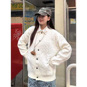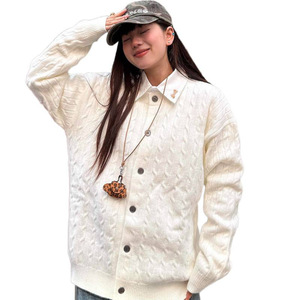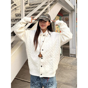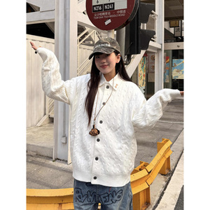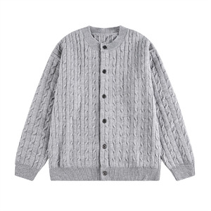 加长加大简约纯色麻花肌理感毛衣男女早秋宽松百搭针织衫外套