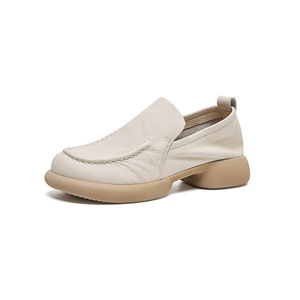 头层牛皮妈妈鞋春秋新款中年女皮鞋真皮软底不累脚单鞋复古乐福鞋