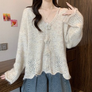 2025秋季新款立体花朵亮片V领毛衣外套大码女装胖mm针织上衣
