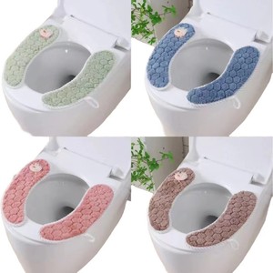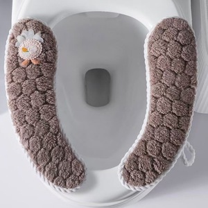 0482月牙式马桶垫粘扣式马桶贴民宿家用毛绒可水洗带提手坐便垫