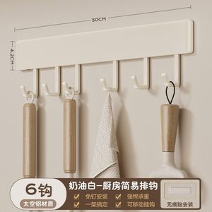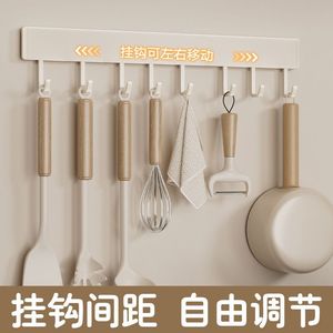 免打孔挂钩厨房置物架奶白壁挂太空铝多功能锅铲勺子厨具收纳排钩