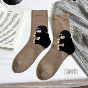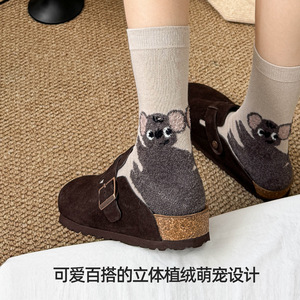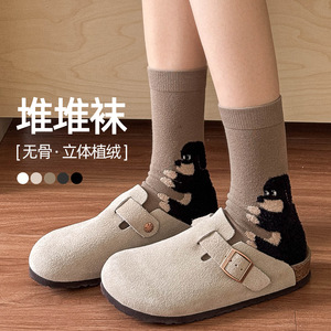 秋季新款中筒棉袜日韩风可爱卡通堆堆袜植绒女休闲动物无骨月子袜