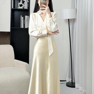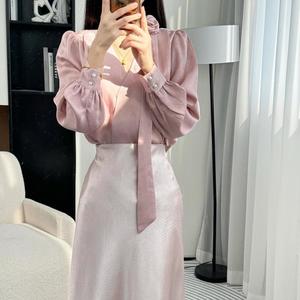 2025秋季新款轻熟气质长袖上衣半身裙套装女显瘦衬衫通勤两件套