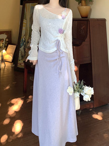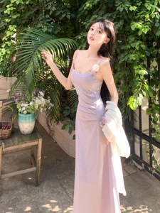 大码法式温柔风紫色连衣裙女秋季别致绝美吊带裙胖MM遮肚显瘦裙子