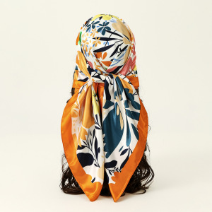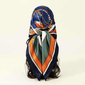 秋季热销新款优雅印花90色丁方巾百搭时尚装饰女士仿真丝丝巾领巾