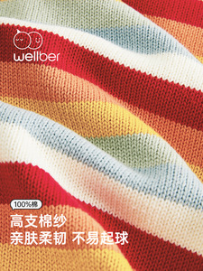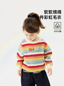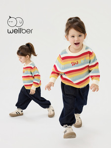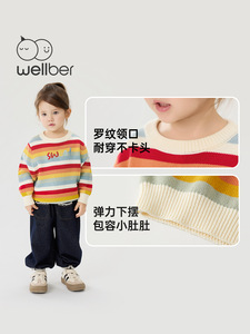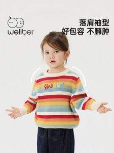 威尔贝鲁中小童毛衣全棉2025新款秋冬保暖针织上衣男童女童毛线衣