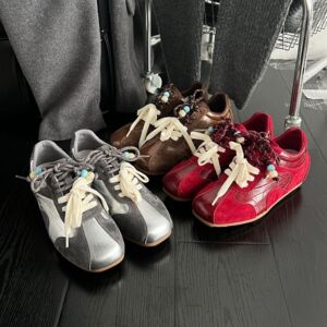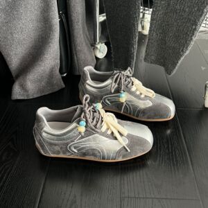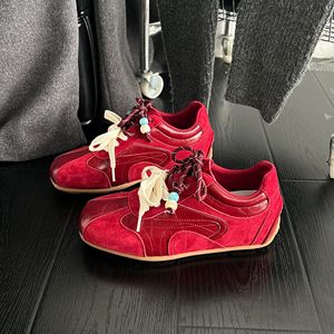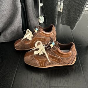 真皮超火真皮撞色鞋带德训鞋女2025秋新款内增高休闲鞋运动阿甘鞋