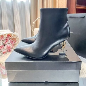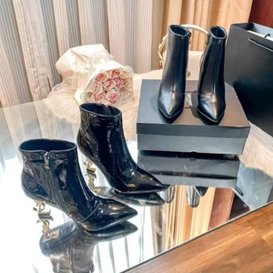 ys2025冬季款中筒靴跨境外贸大码漆皮真皮异形金属跟高跟鞋女单靴