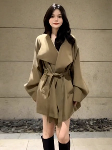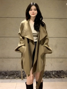 韩系感气质风衣外套女早秋2025新款小个子中长款加厚收腰大衣