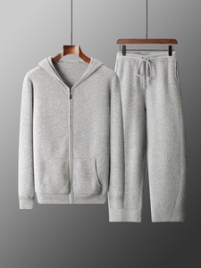 河北清河工厂批发100%澳洲羊毛连帽开衫+阔腿裤男士套装