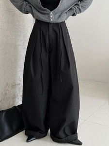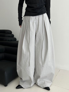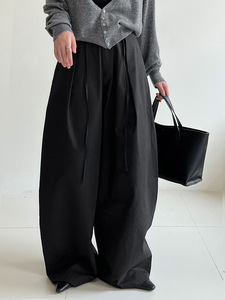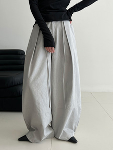 NS 韩系设计宽松垂感抽绳气球裤女秋新款褶皱慵懒感百搭长裤1718