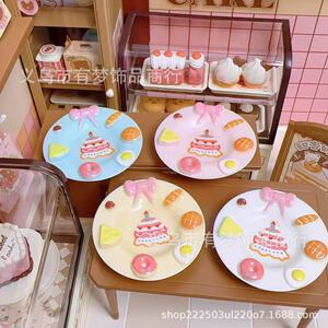 仿真微缩蛋糕盘子diy奶油胶树脂饰品配件手工材料捏捏装饰盘摆件