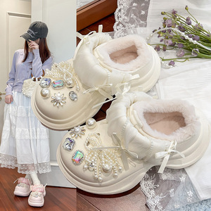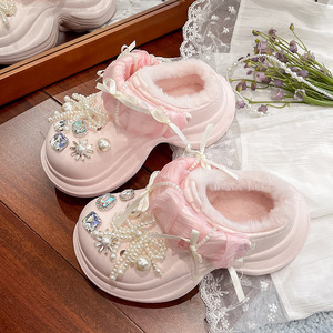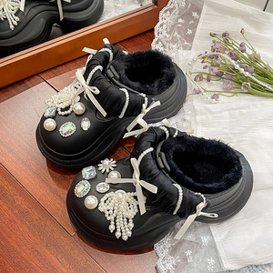 2025冬季绝美新品小蛮腰加绒洞洞鞋保暖防滑外穿百搭包头棉拖鞋女