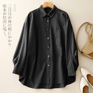 棉质衬衫外套女设计感小众个性袖时尚下摆翻领外套女宽松衬衣女秋