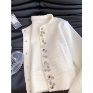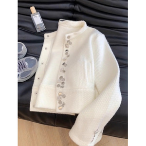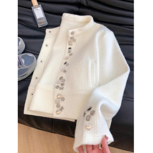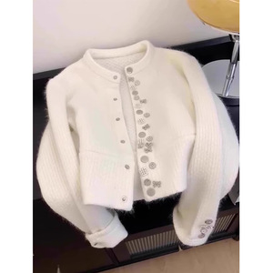 小香风白色重工浣熊绒毛衣外套女秋冬2025新款初秋款针织开衫上衣