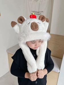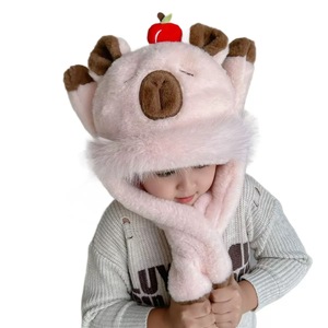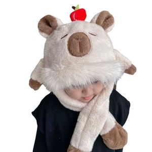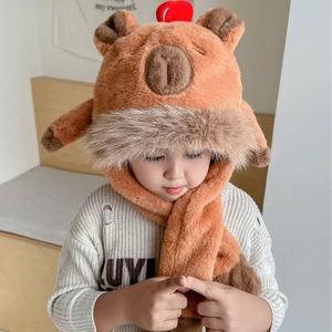 卡皮巴拉帽子围巾一体儿童捏耳朵会动的2025新款秋冬季围脖男孩宝