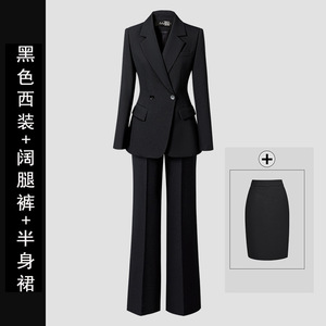 黑色西装+半身裙+阔腿裤