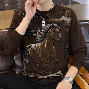 30-50岁男士圆领卫衣商务休闲打底衫宽松男装中青年上衣卫衣男