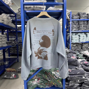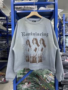 ERD忧郁的富二代回忆舞女儿童水洗蓝做旧插肩宽松圆领卫衣