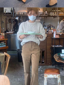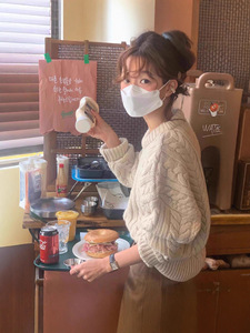 现 韩国设计师th* barnnet八奶麻花毛衣韩系女装简约高级套头针织