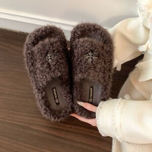 羊毛版十月雪苏茵茵同款保暖十字架厚底增高一字带毛毛拖鞋女外穿