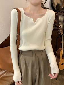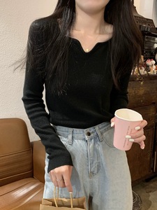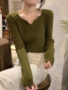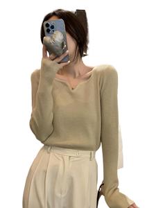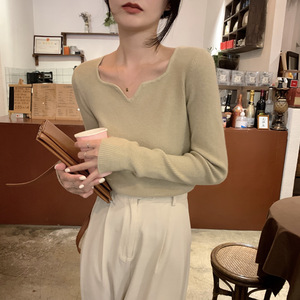 2025洋气海鸥领V领显瘦毛衣女软糯针织打底衫高级感chic内搭上衣