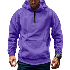 秋冬跨境男装亚马逊新款长袖连帽休闲套头卫衣半拉链拼块加绒卫衣