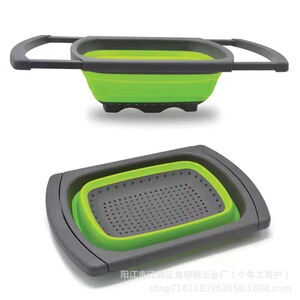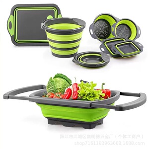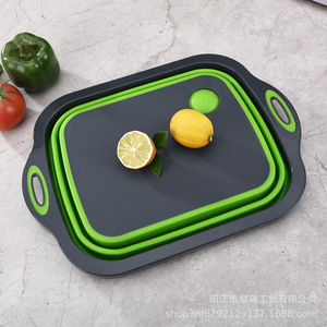 跨境热销多功能折叠沥水篮便携折叠餐板两用切菜洗菜沥水篮三合一