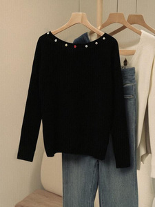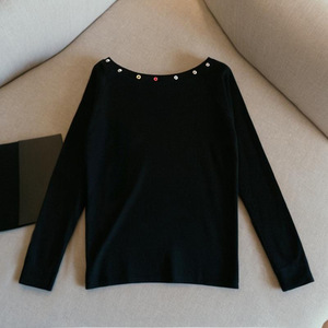 美式黑色斜肩露肩长袖t恤女早秋春秋季宽松内搭打底衫一字肩上衣