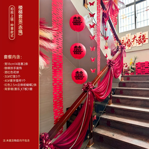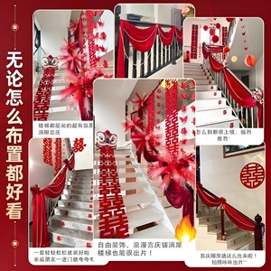 醒狮婚房布置套装女方卧室楼梯扶手装饰长条喜字拉花农村婚庆用品