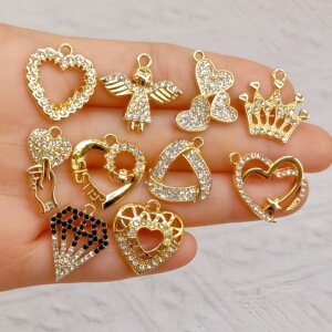 复古带钻饰品配件项链皇冠diy天使吊坠耳环耳饰爱心桃心锁钥匙