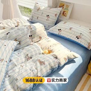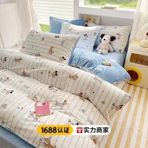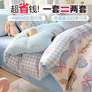 a纯棉b豆豆绒牛奶绒床上四件套全棉单面加绒珊瑚绒被套床单三件套