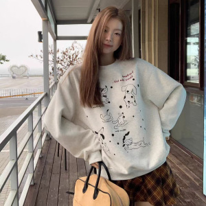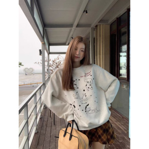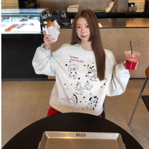 美式卡通图案印花圆领休闲宽松套头卫衣女情侣早秋新款长袖上衣潮