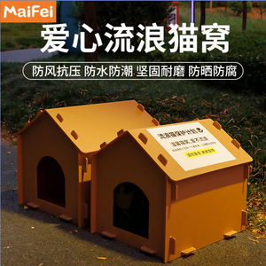 新款户外猫窝四季通用防晒防水防潮封闭式保暖爱心流浪猫窝猫别墅