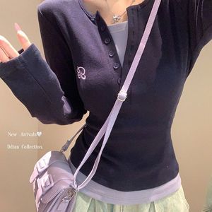 撞色正肩假两件纽扣修身长袖T恤女2025秋冬新款bm内搭打底衫上衣