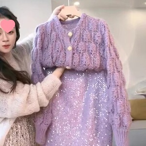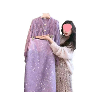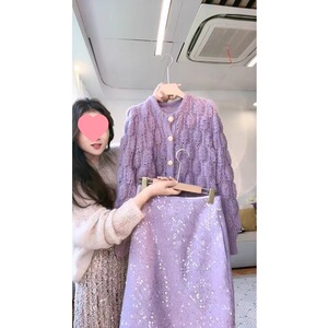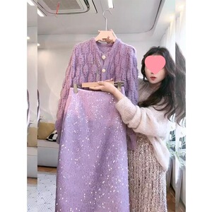 2025秋冬一整套紫色高级穿搭针织长袖上衣小香风半身裙两件套装裙