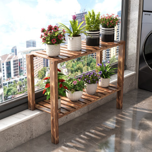 阳台花架窗台延伸板置物架实木防腐木加宽可定扩展架花盆架高低g^