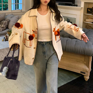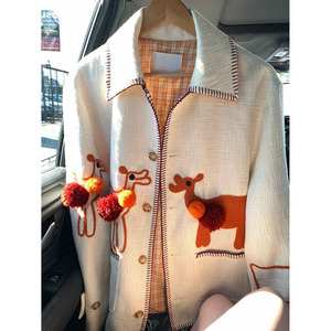 欧货RUAN系列羊驼球球刺绣重工麻感夹克外套2025秋季新款时尚独特