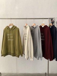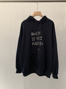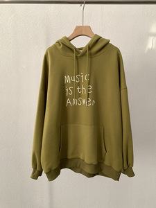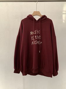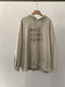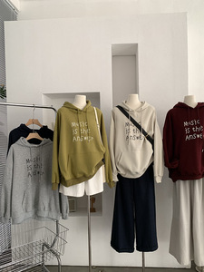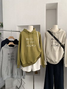 欧玛莱 英文字母印花连帽宽松长袖中长款套头卫衣秋季上衣女 4691