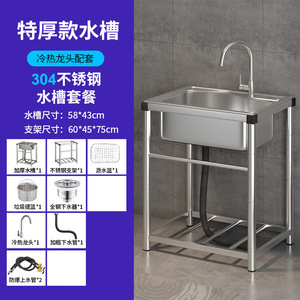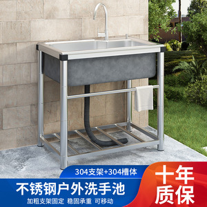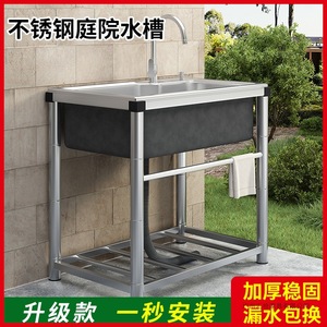 户外庭院洗手台洗衣台盆洗手池不锈钢盆台面支架一体家用一体式g^