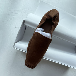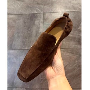 欧洲站法式百搭单鞋反绒方头乐福鞋复古舒服休闲平底开车豆豆鞋
