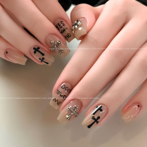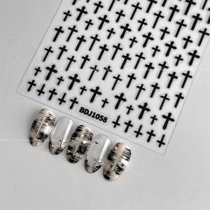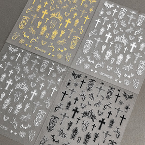 网红克罗心美甲贴纸简约朋克风十字架月亮背胶指甲贴流行装饰批发
