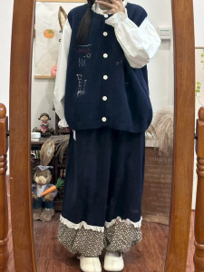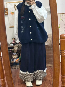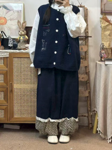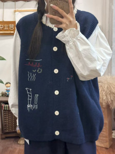 2025秋季圆领单排扣时尚卡通马甲韩式设计感小众针织外搭背心毛衣