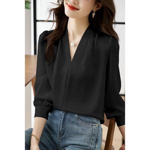 韩范设计感简约衬衫女春秋季气质V领感轻熟风通勤雪纺衫上衣