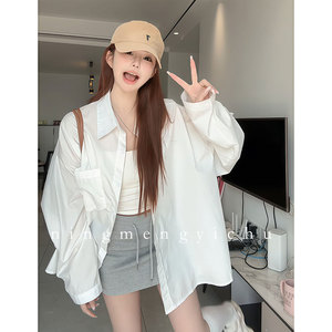 法式白色衬衫上衣女夏2025新款宽松百搭休闲显瘦薄款防晒衬衣外套