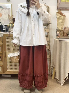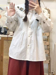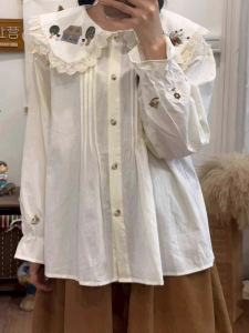 日系甜美刺绣文艺宽松长袖衬衣秋季新款娃娃领设计感减龄休闲衬衫